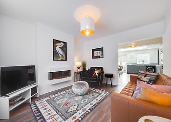 - Woodburning stove in open-plan living
